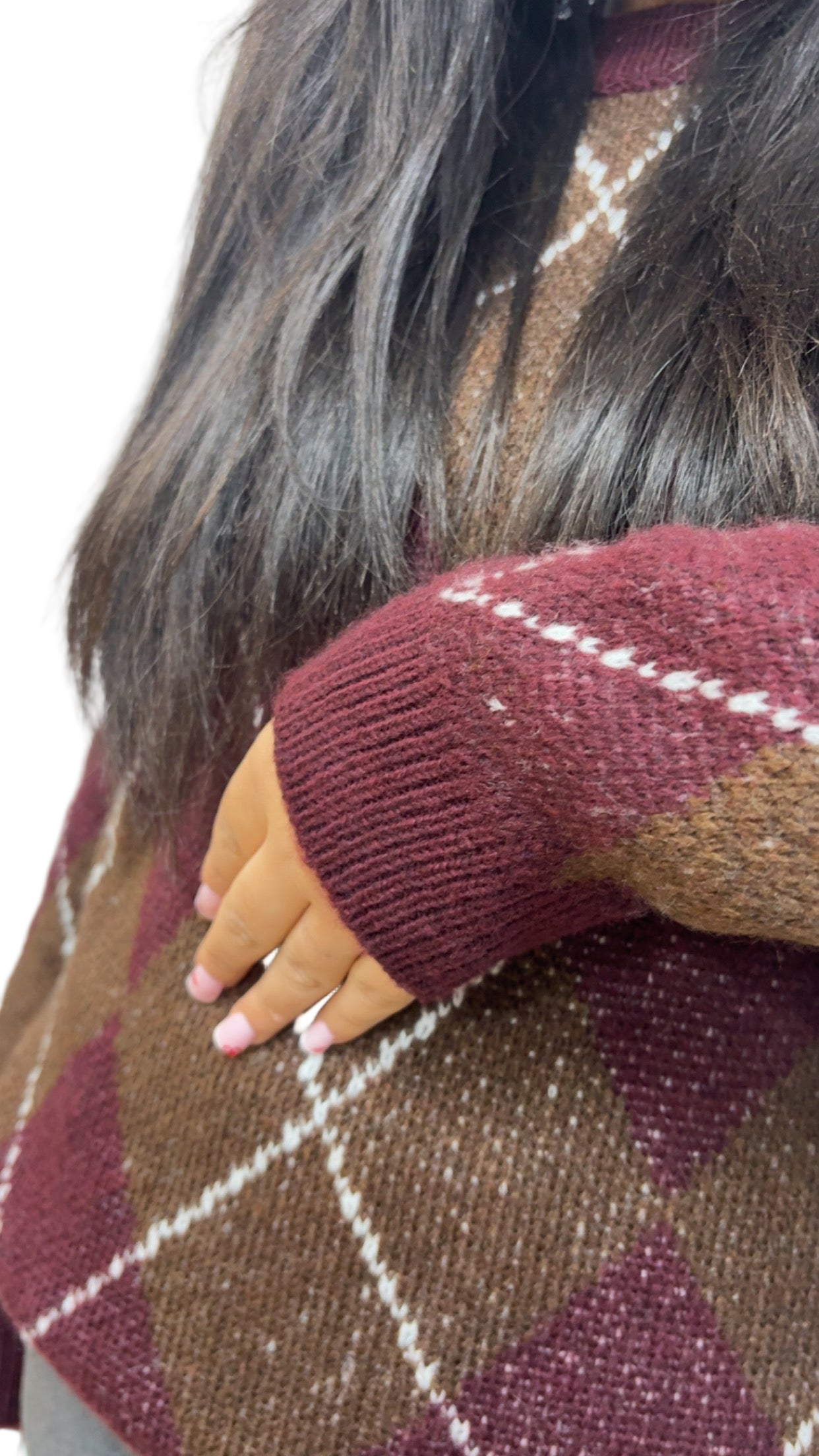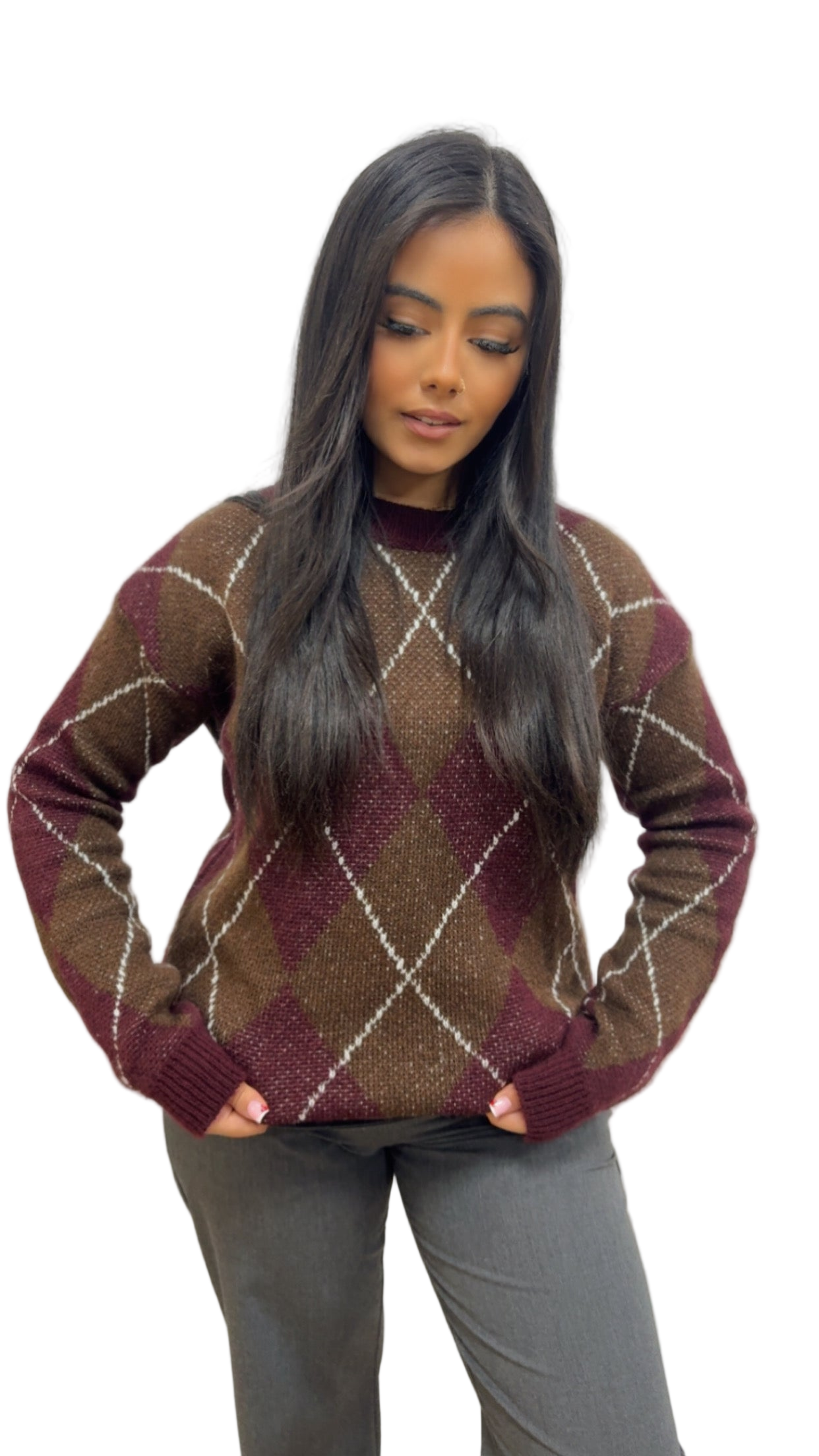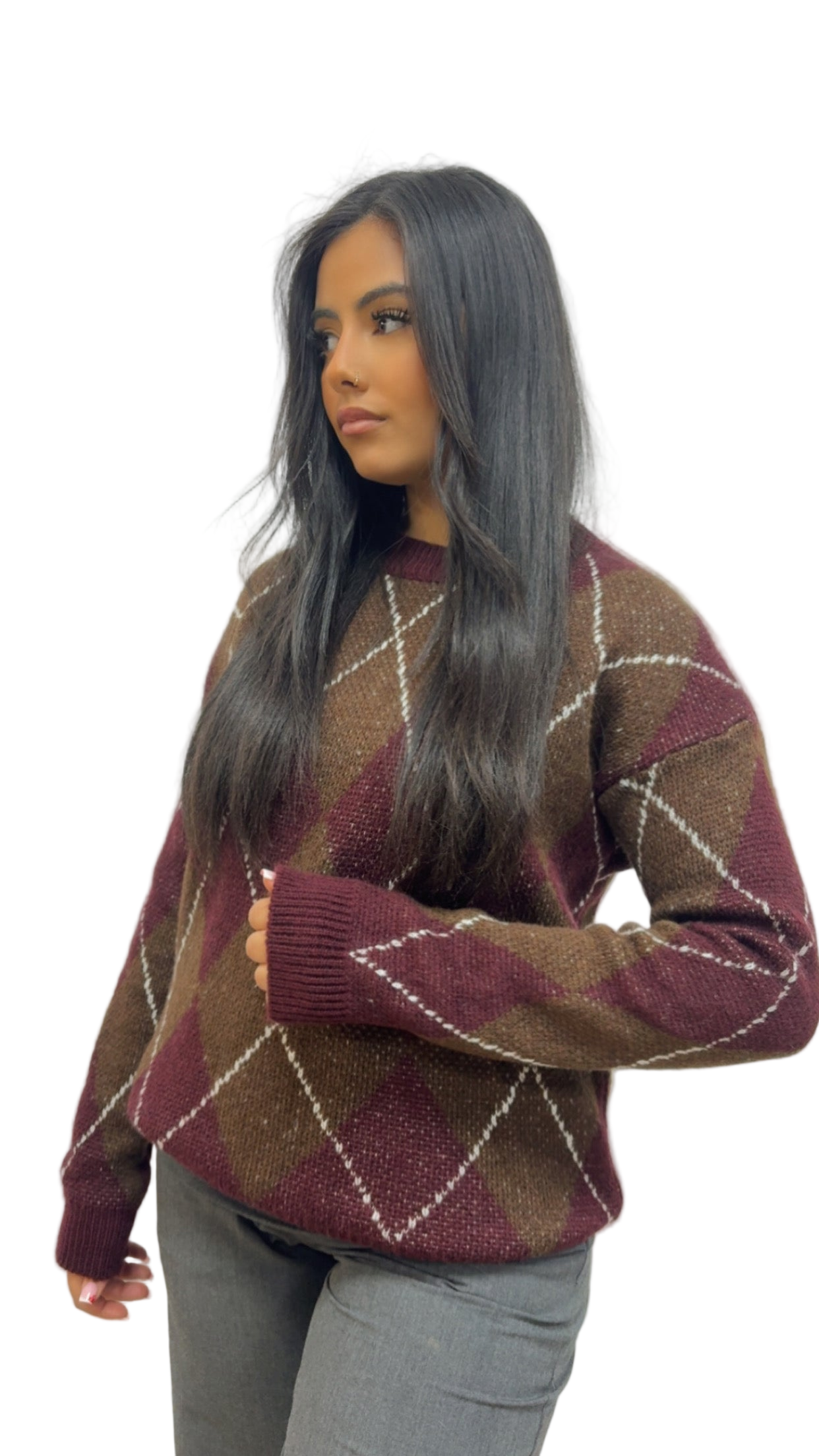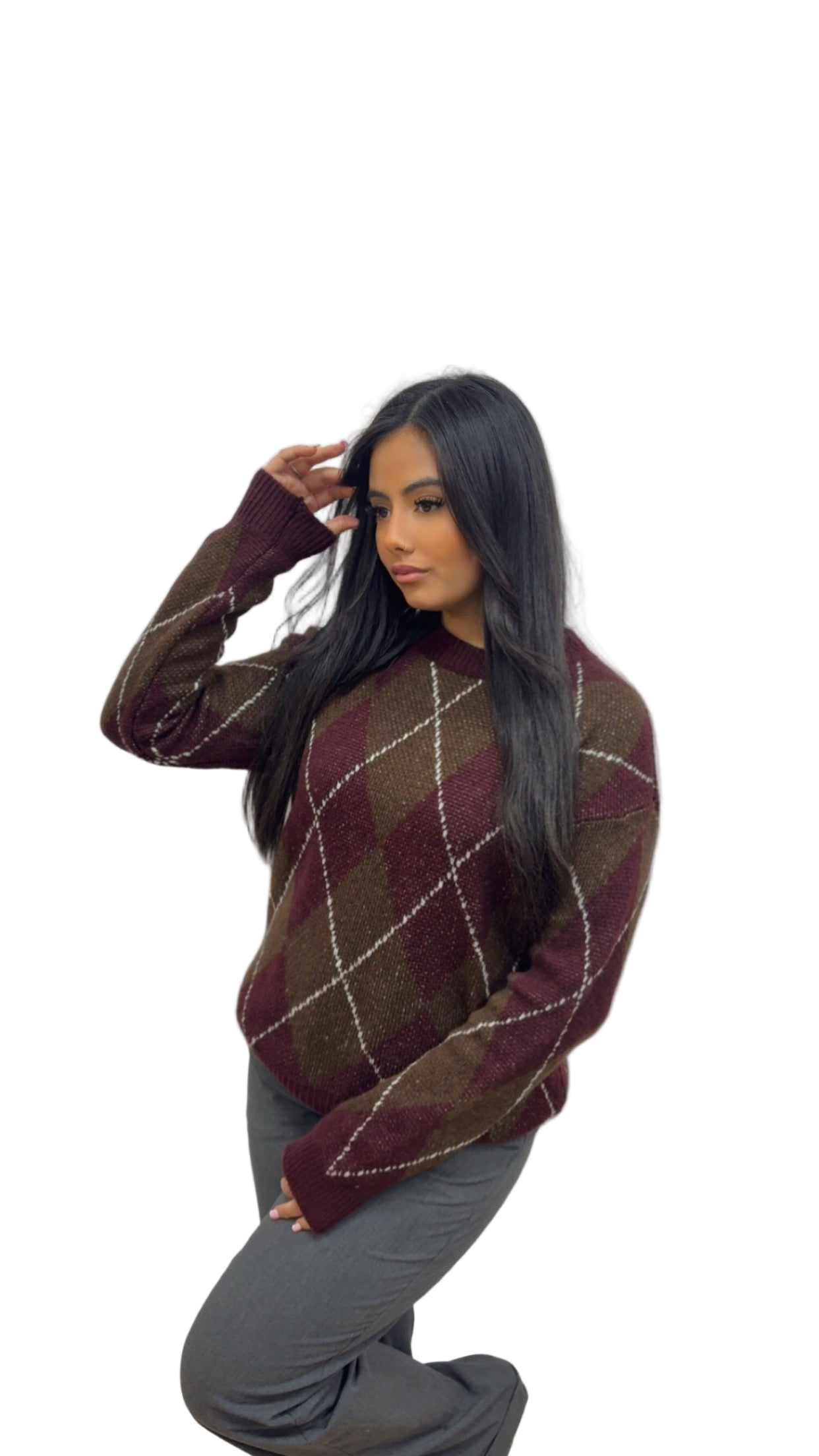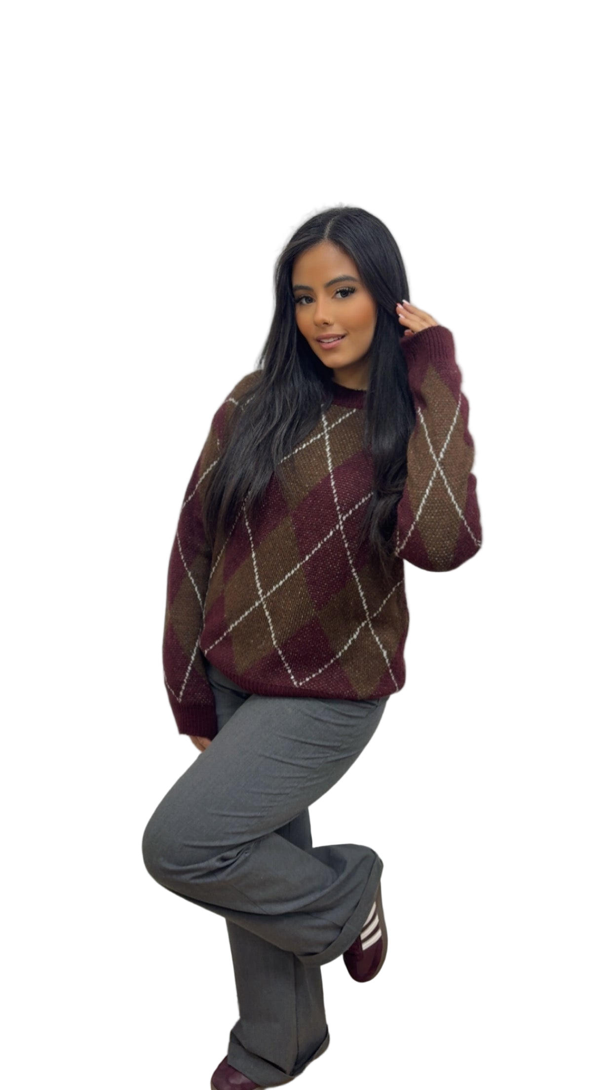 Pull MACADAM à carreaux bordeaux